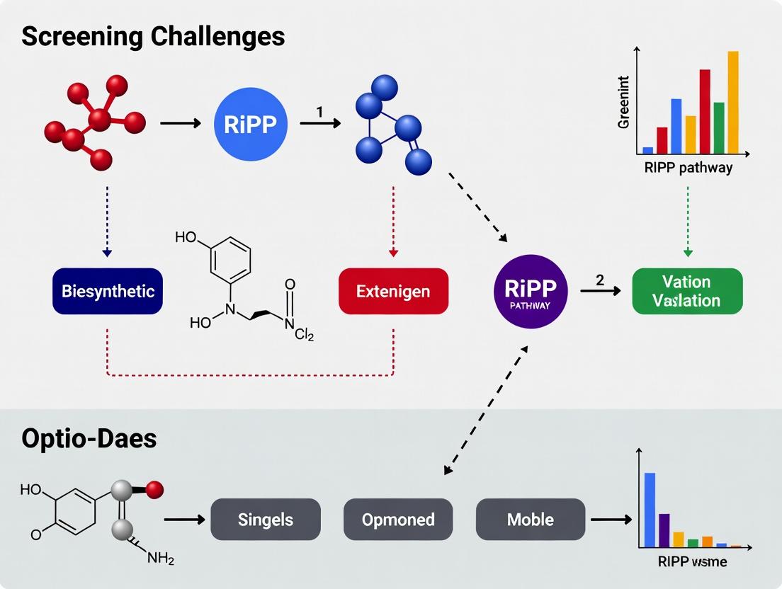 The systematic engineering and screening of RiPP pathways represent a formidable yet highly rewarding frontier in natural product discovery. Success hinges on integrating foundational biological understanding with robust methodological construction, proactive troubleshooting, and rigorous comparative validation. As synthetic biology toolkits advance and computational prediction becomes more sophisticated, the bottlenecks in heterologous expression and screening are rapidly being dismantled. The future of RiPPs lies in de novo design of biosynthetic enzymes, ultra-high-throughput functional screens integrated with real-time analytics, and the generation of non-natural RiPP variants with tailored properties. For biomedical researchers, mastering this multidisciplinary approach is key to unlocking the vast, genetically encoded chemical diversity of RiPPs, paving the way for a new generation of precision therapeutics with unique modes of action against evolving clinical threats.